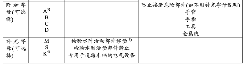 注:用補充字母K來表示道路車輛對防塵(第一個數(shù)字5和6)與防水(第二個數(shù)字4、6和9)的特殊規(guī)定。